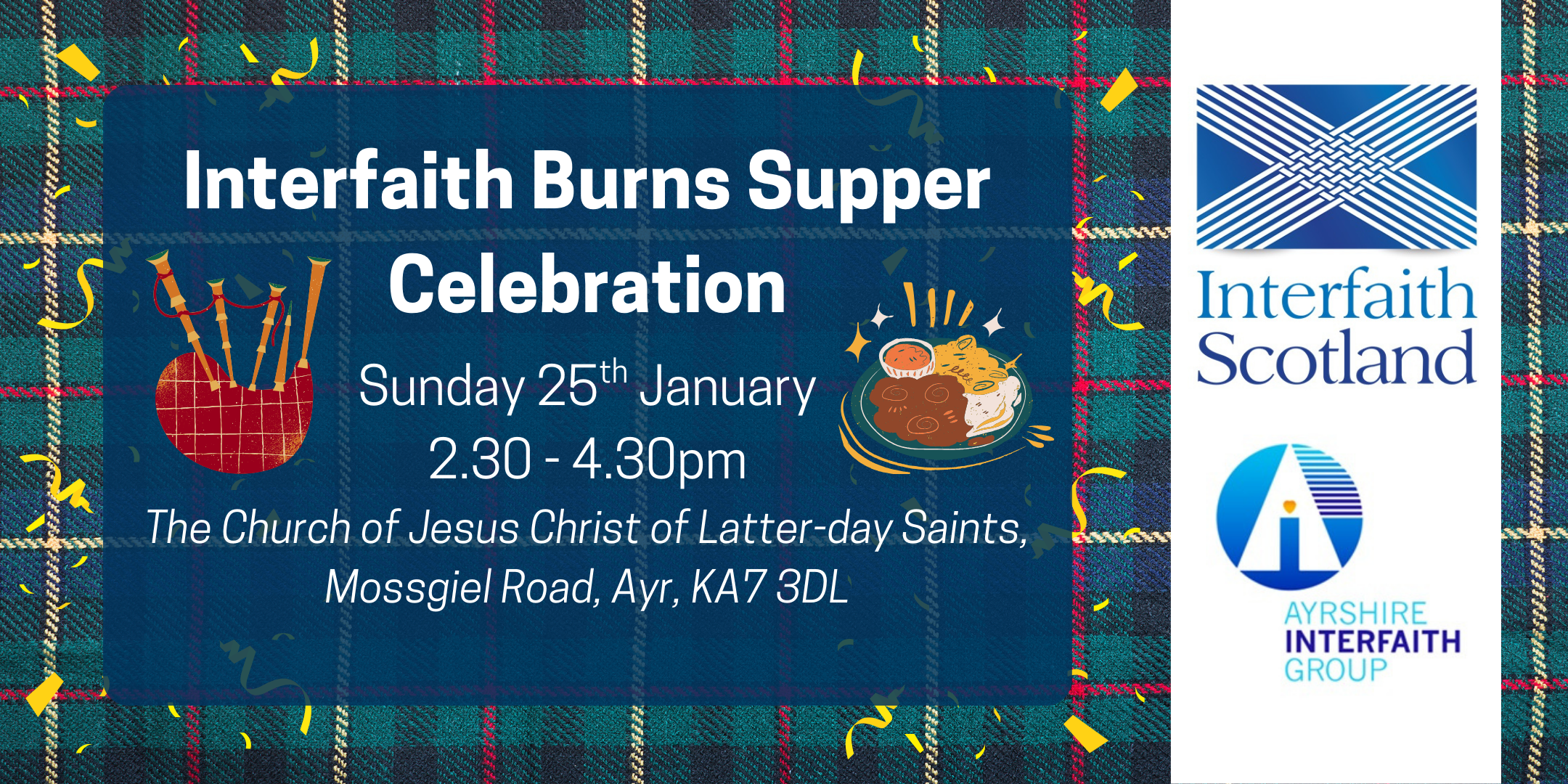 As Ayrshire is the birthplace of Robert Burns, we have the pleasure of working in collaboration with the Ayrshire Interfaith Forum to plan for this event. A special thanks to the Church of Jesus Christ of Latter-day Saints for supporting this event with a lovely venue and kind hospitality.