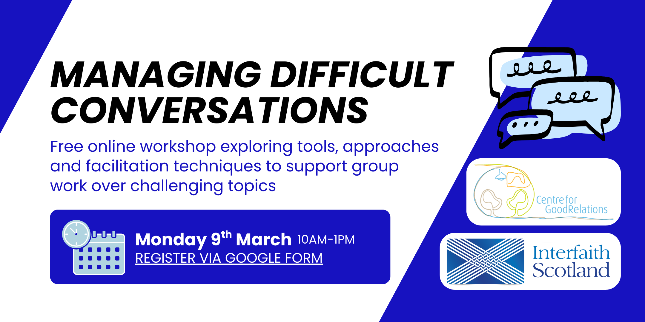 The session will be facilitated by Sam Tedcastle, Director and Senior Practitioner from the Centre for Good Relations and Jamie Spurway, Religious Equalities Training Officer for Interfaith Scotland.